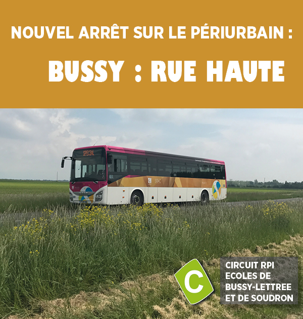 Lire l'actualitéBussy (Rue Haute) : votre nouvel arrêt desservi par la ligne C et le circuit RPI écoles de Bussy-Lettrée et de Soudron.